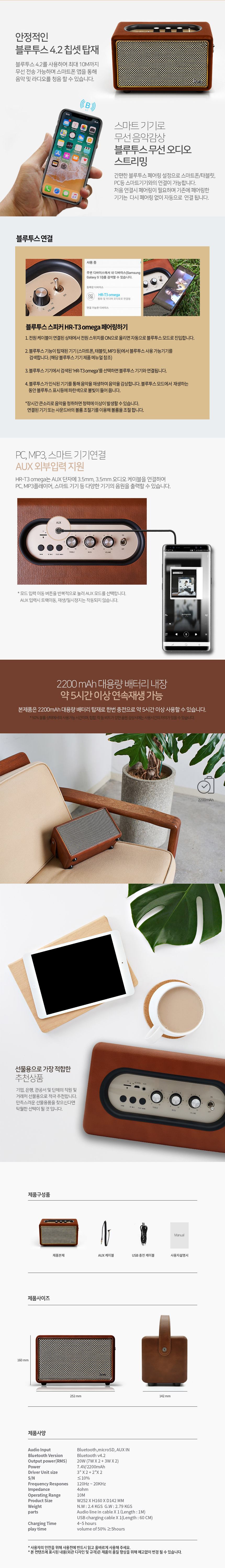 구성 | 본체, 오디오케이블, 충전케이블, 가죽손잡이, 메뉴얼 | 제품규격 | 252x160x142mm |