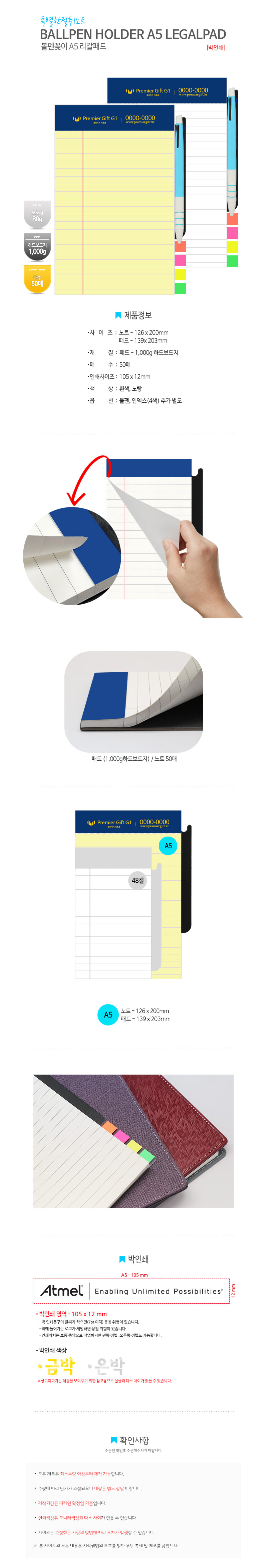 | 품명 및 모델명 | 볼펜꽂이 리갈패드 A5 박인쇄 |
