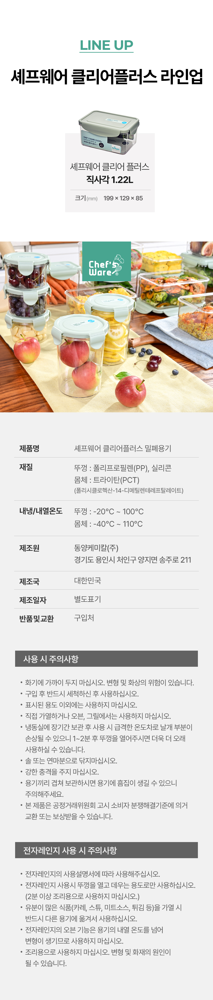 품명 및 모델명 셰프웨어 클리어플러스 밀폐용기 판촉 1호